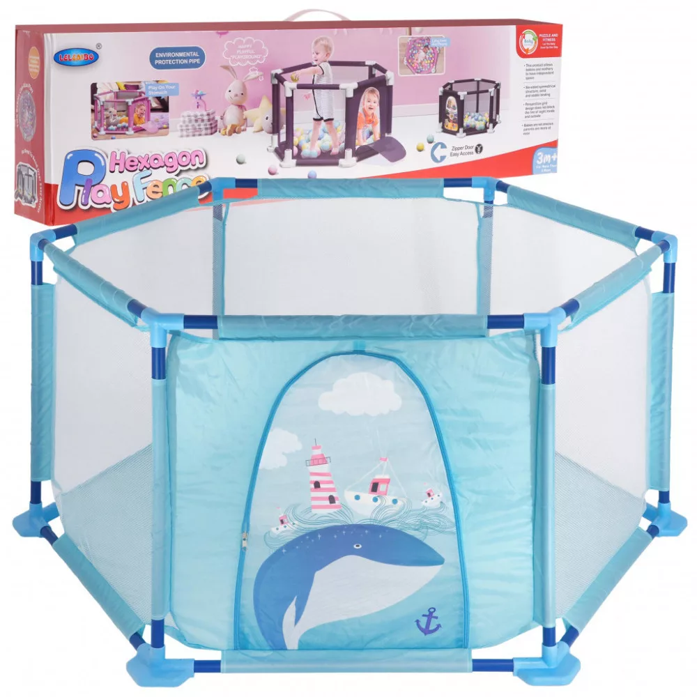 A járóka öt fala hálóból készült, ami lehetővé teszi a baba megfigyelését játék közben. Az egyik fal cipzárral rendelkezik a könnyű be- és kilépés érdekében. A járókához 40 színes golyó tartozik.
