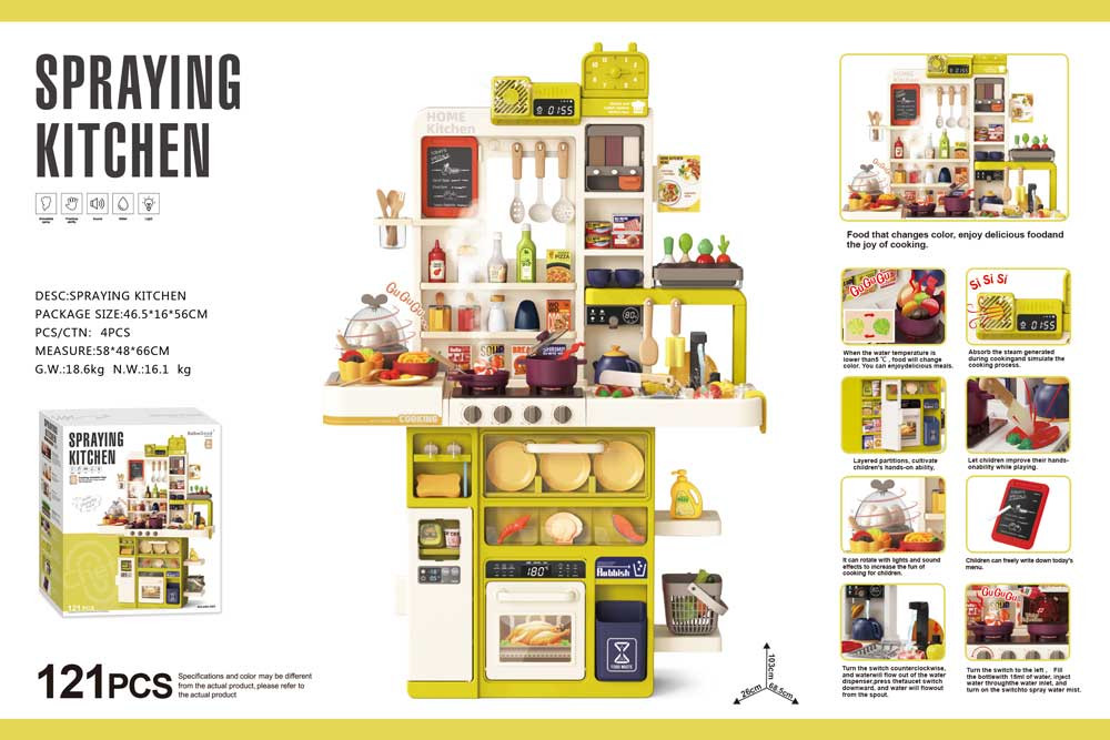 Ez a monumentális, 121 részes játékkonyha nem csupán egy játék, hanem egy teljes élményközpont. A modern funkcióknak köszönhetően a gyerekek úgy érezhetik magukat, mintha egy valódi konyhában tüsténkednének: valódi vízzel mosogathatnak, "füstölő" edényekben főzhetnek, és figyelhetik, ahogy az ételek megváltoztatják a színüket.