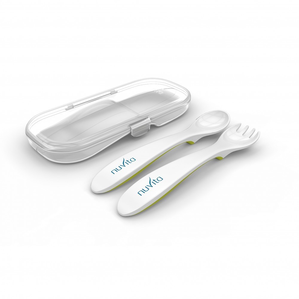 Rukoväť je ľahká a má optimálnu úchop pre drobné ruky. Spodná strana je vybavená špeciálnou hygienickou podporou: Pri umiestnení na stôl nie je časť, ktorá sa vkladá do úst nikdy v kontakte s plochami, na ktorých môžu byť rôzne baktérie. Puzdro je praktickým obalom, ktorý dovolí používať príbory na cestách, bez toho, aby došlo k znečisteniu okolia od zvyškov jedla.