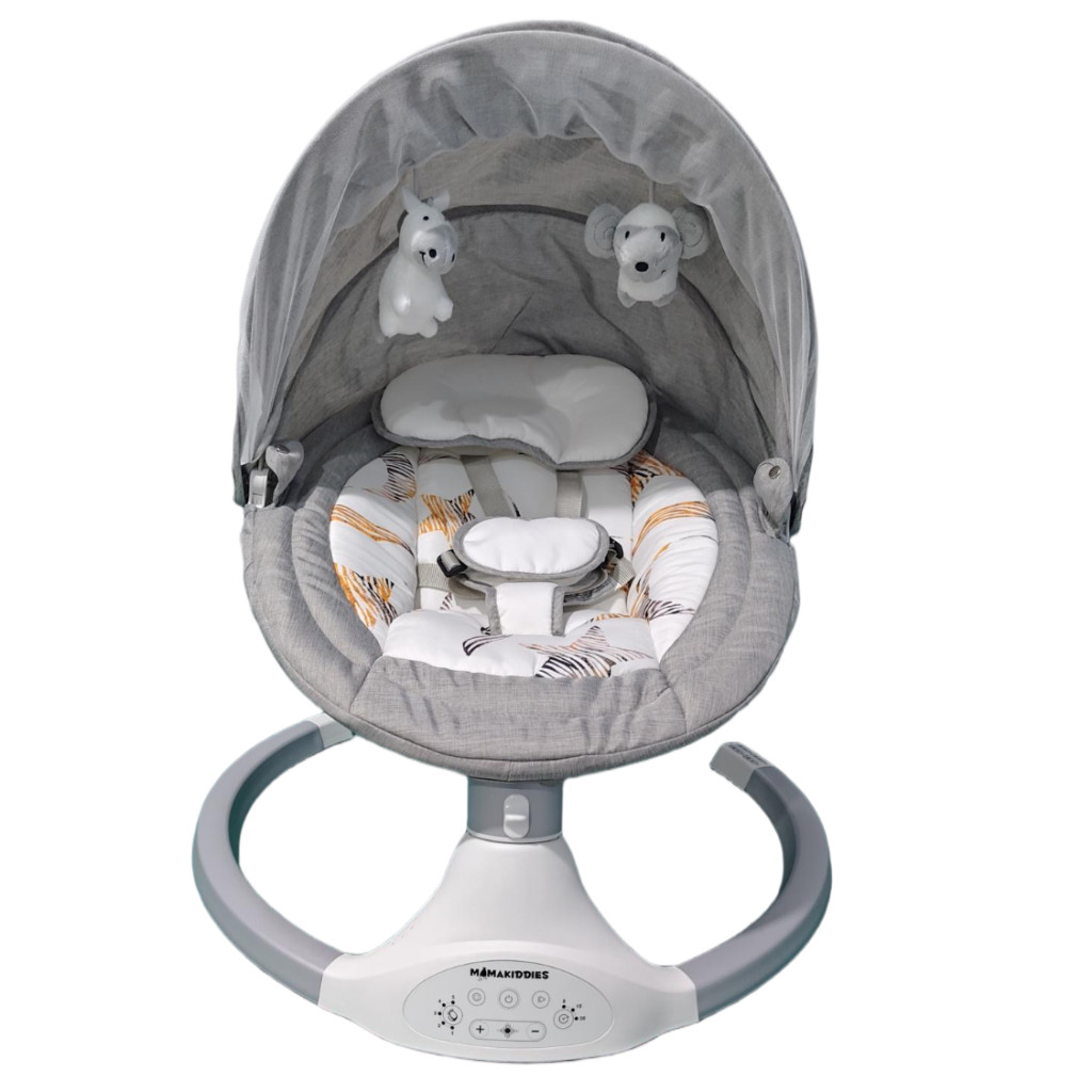 Mama Kiddies prémium 2az1-ben elektromos hinta és pihenőszék távirányítóval szürke színben + ajándékok